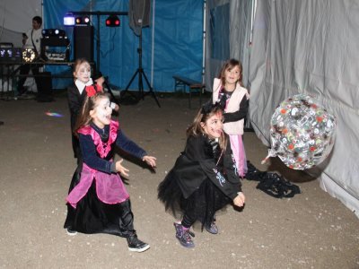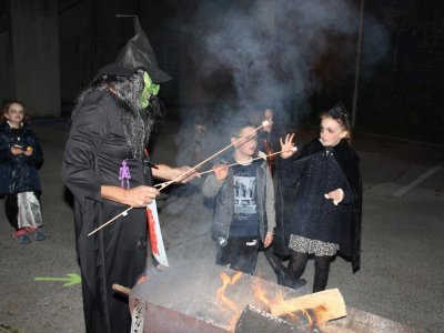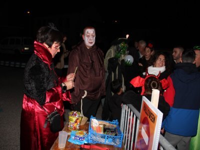 Quelques scènes insolites, surprenantes les attendaient comme la cage des pendus où ils se voyaient malgré tout offrir des bonbons, puis passage à côté de fantômes attablés dans les bois pour le souper d'Halloween ou sursaut avec Céline qui se reposait faussement dans un cercueil au cimetière etc. Arrivés vers les Fariboles, des fantômes leur proposaient du réconfort avec un Chamallow fondu au feu de bois. Enfants ou adultes reconnaissaient s'être bien amusés, effrayés pour certains mais pour en rire ensuite. Retour vers la salle des fêtes où la fête se poursuivait, avec restauration, buvette, ambiance avec DJ Berny. Les enfants attendaient aussi ce moment de liberté où ils pouvaient jouer ou danser en toute quiétude, déguisés, maquillés, c'est leur soirée !